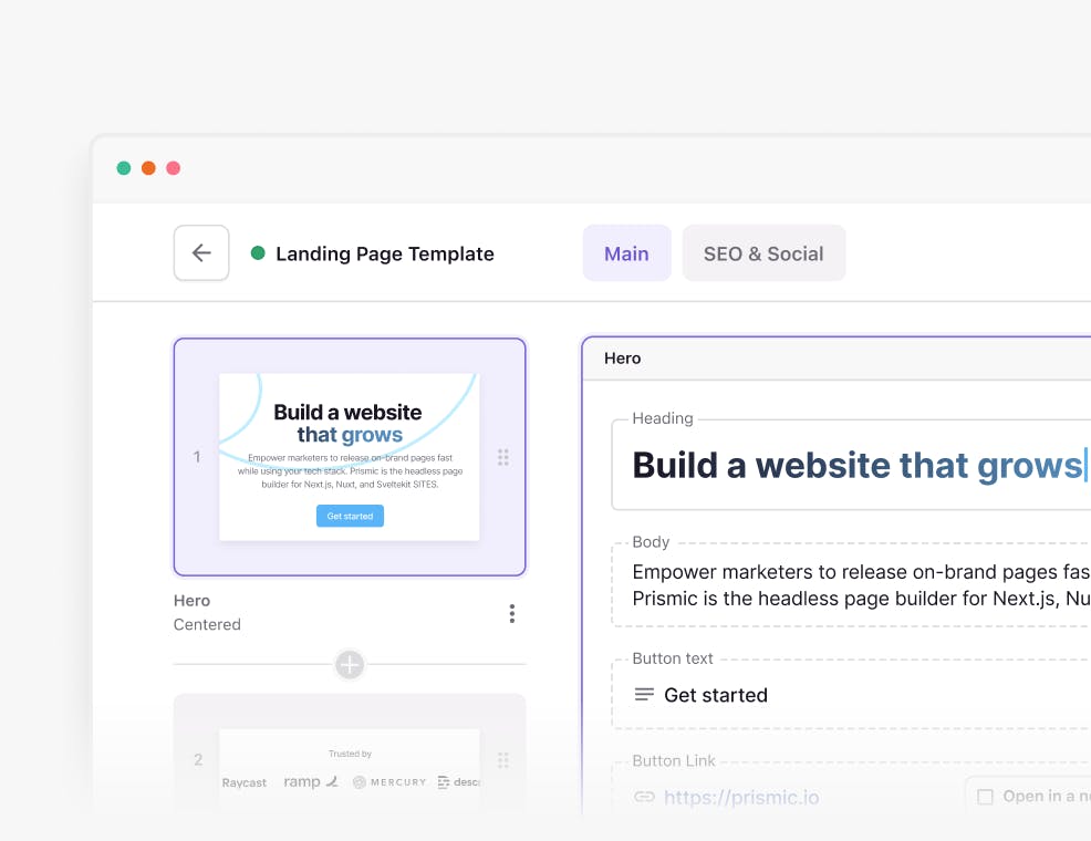 Teams use Prismic’s headless CMS and landing page builder to build and automate websites that convert.