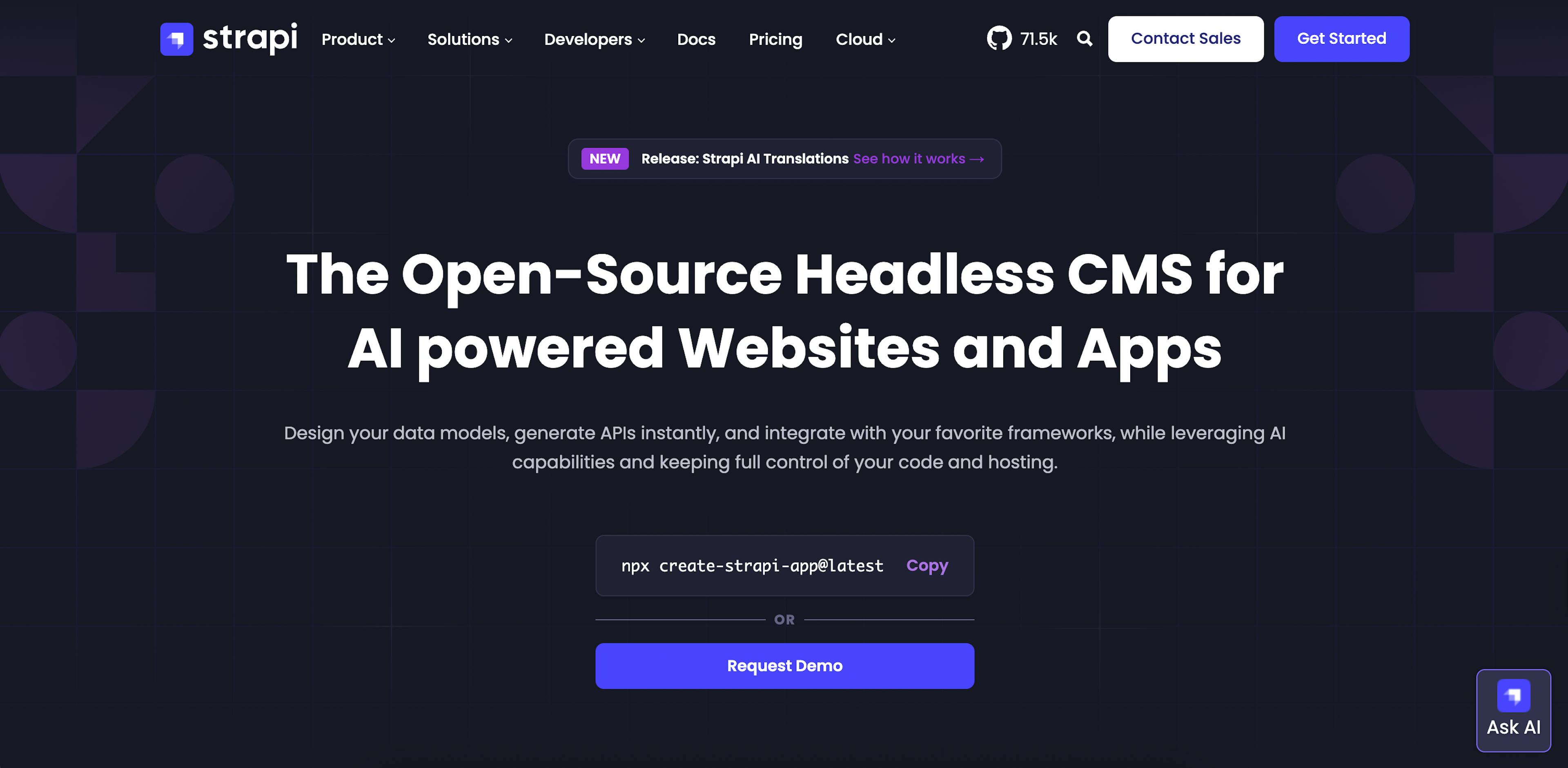 Strapi is an open-source headless CMS that gives development teams full control over their infrastructure, code, and hosting, while content managers can update and publish anytime.