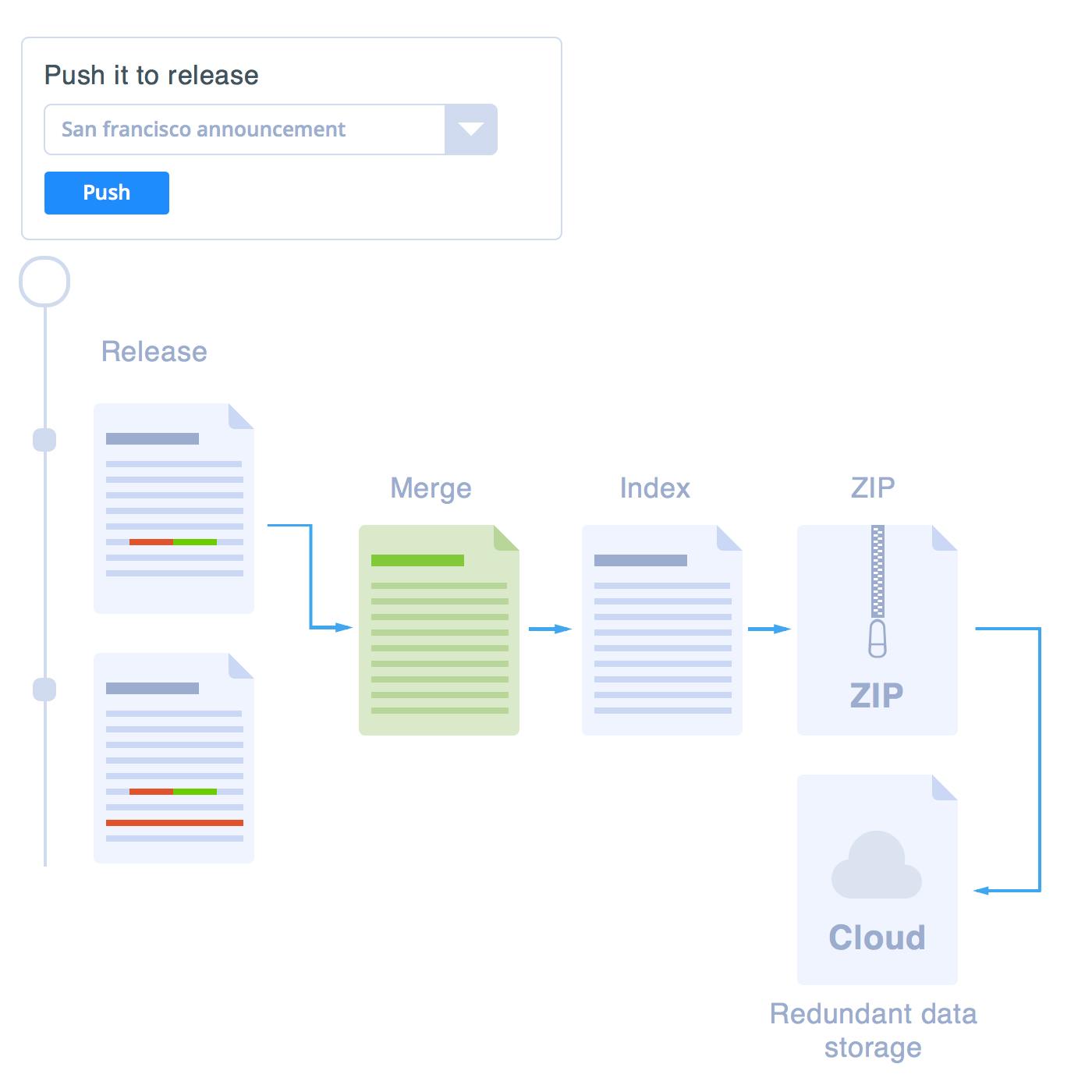 A question might arise from this architecture explanation: how expensive is it to build the Lucene index each time a modification is pushed to a release? It is reasonable to ask how so much indexing and packaging work couldn't affect your editing and publishing workflow in prismic.io - especially when a large number of documents and changes is involved.