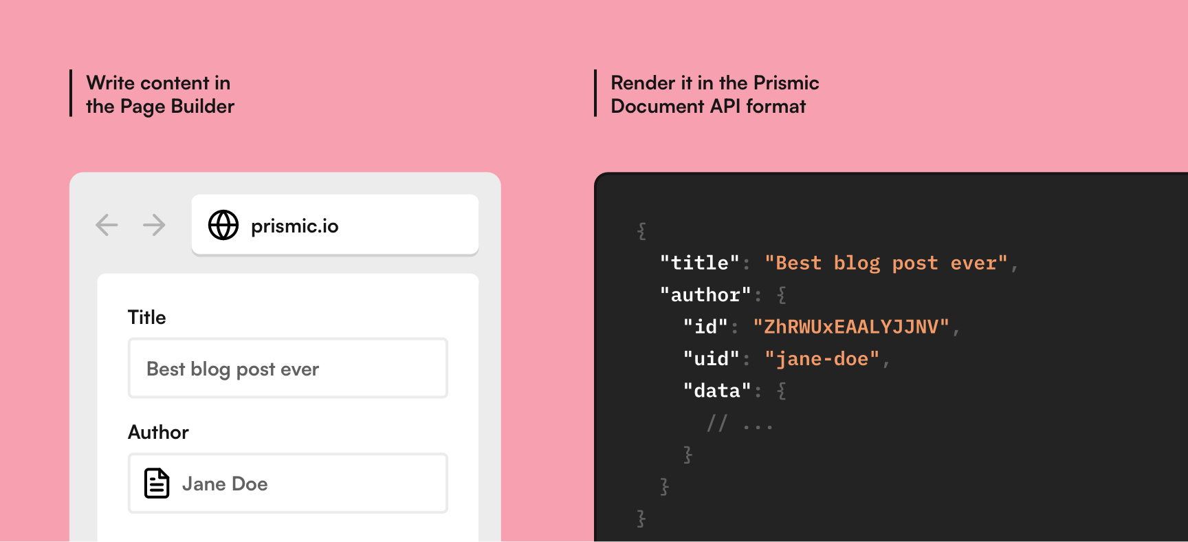 - As content is written in the Page Builder, convert it to Prismic’s Document API format in the browser.