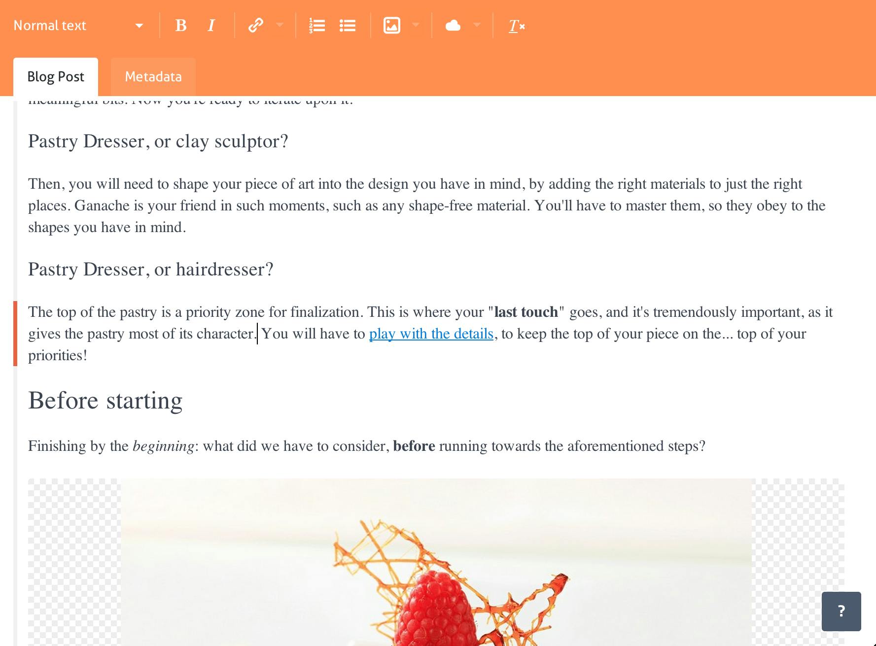 A major feature everyone expects when it comes to manageable content, is the ability to author rich text content. At prismic.io we use what we call structured text chunks as a cleaner way for doing just that.