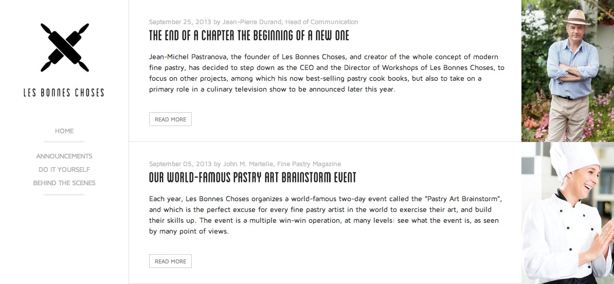 If you take a look at our "Les Bonnes Choses" example, you can see how we use this technique to present the blog posts on the blog's front page.