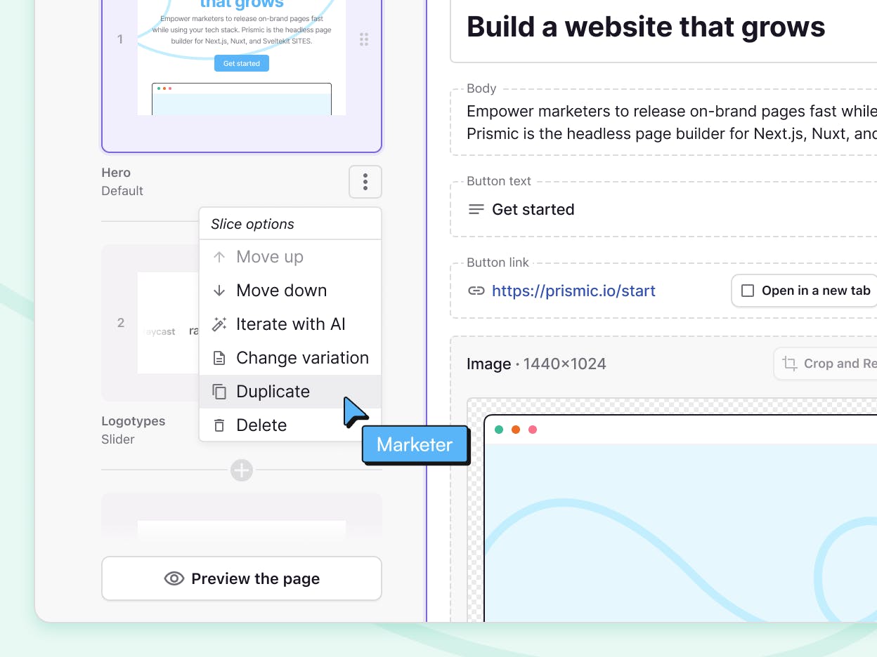 Make and see changes in real-time with our visual Page Builder. Jump into a productive way of crafting pages that drive company growth.