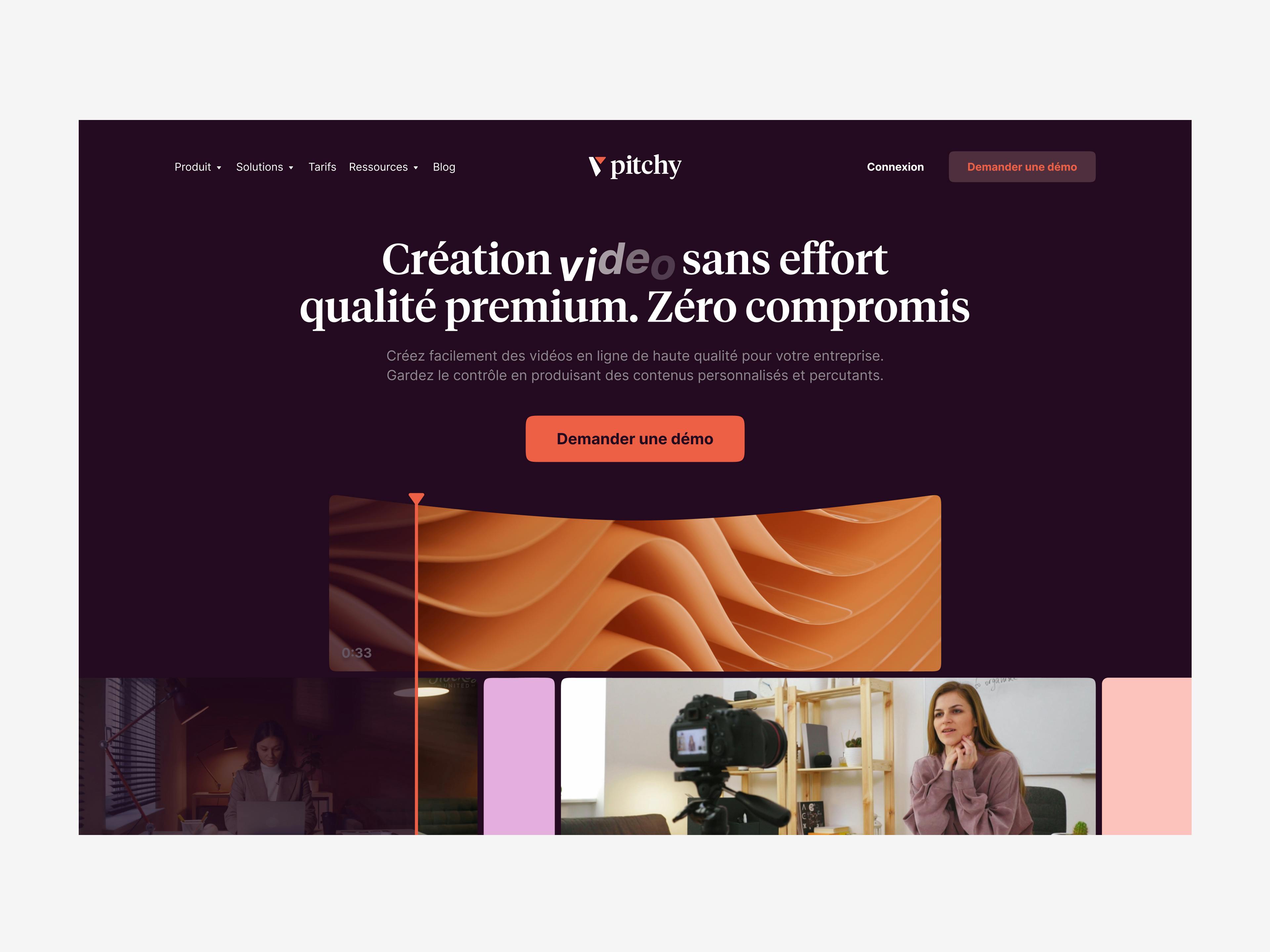 www.pitchy.frWebsitePitchy helps companies internalize video production, giving them control over their brand. The new identity reflects Pitchy’s expertise, passion, and guiding role.