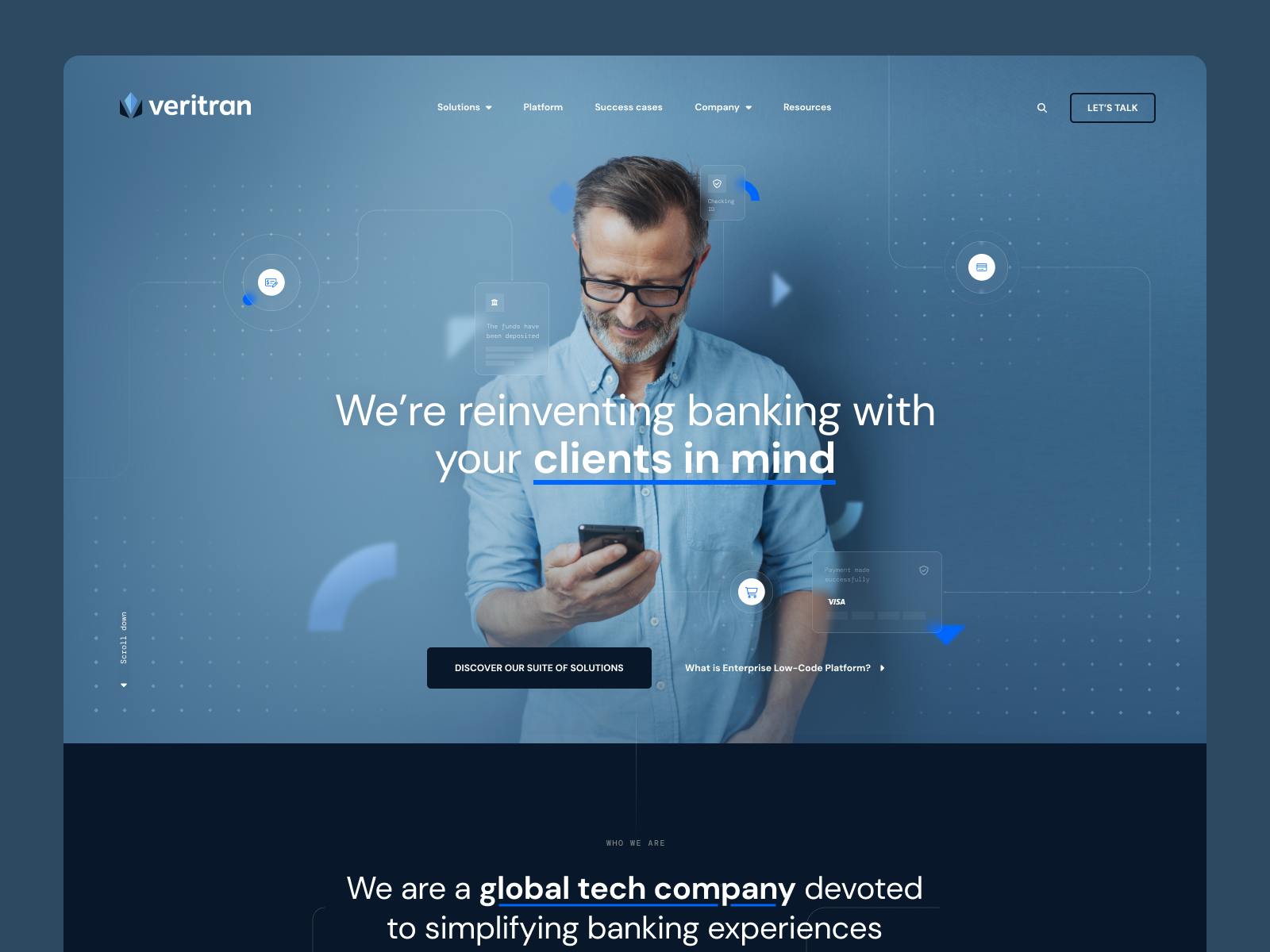 www.veritran.comWebsiteFor Veritran, we built a sleek and functional website with Next.js and React.js, complemented by GSAP animations and TailwindCSS for a smooth, responsive design. Node.js and Vercel were used to ensure performance and scalability.
