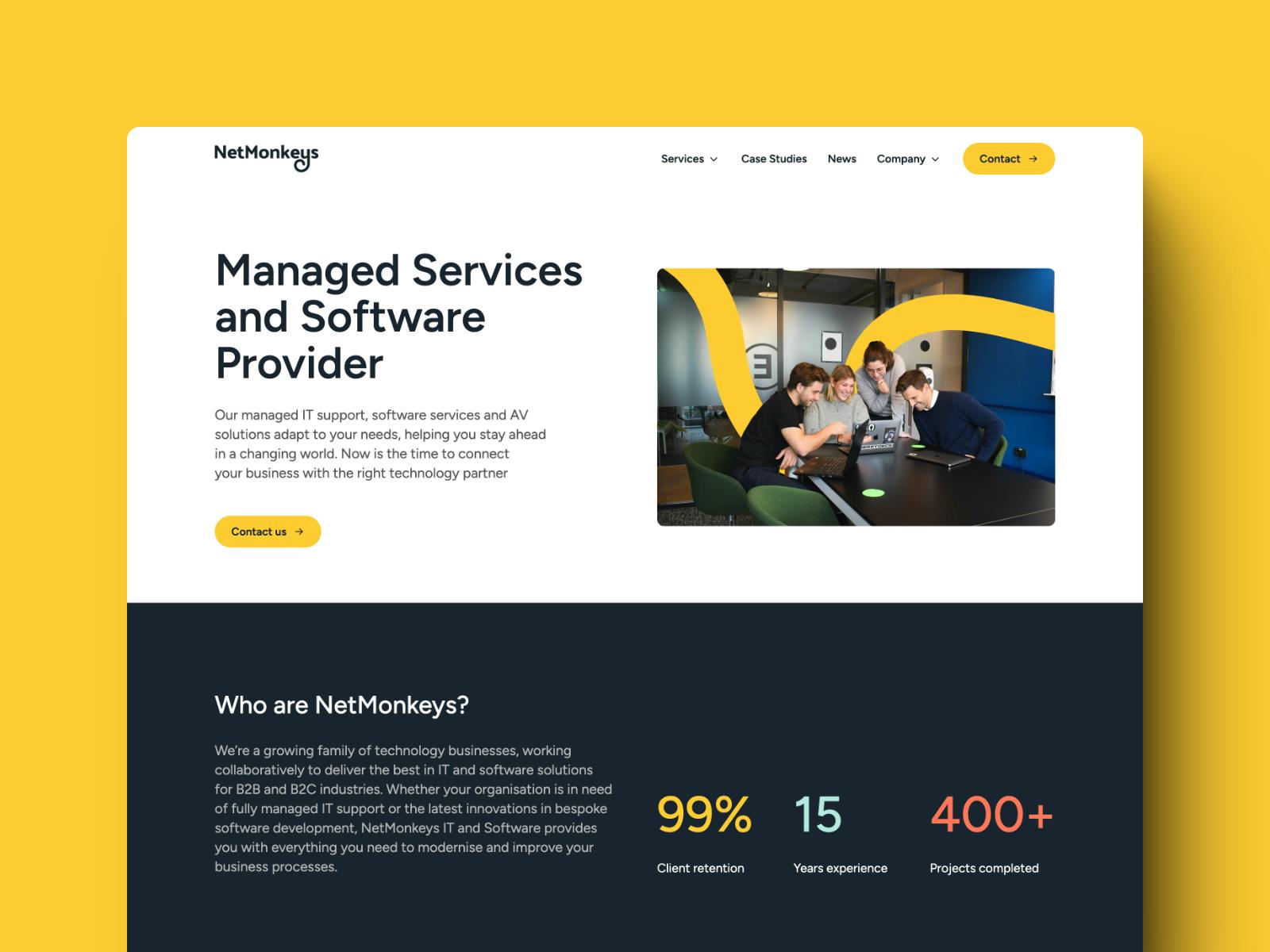 www.netmonkeys.co.ukWebsiteNetMonkeys is an IT consultancy in the UK. We created a website that better reflects their brand and enables them to scale their marketing efforts with a growing library of content and location-specific pages.