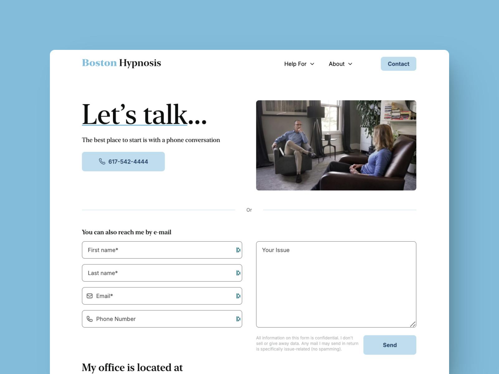 www.bostonhypnosis.comWebsiteBoston Hypnosis wanted to create a more engaging website experience which we implemented using Framer Motion, Next.js and slice machine.