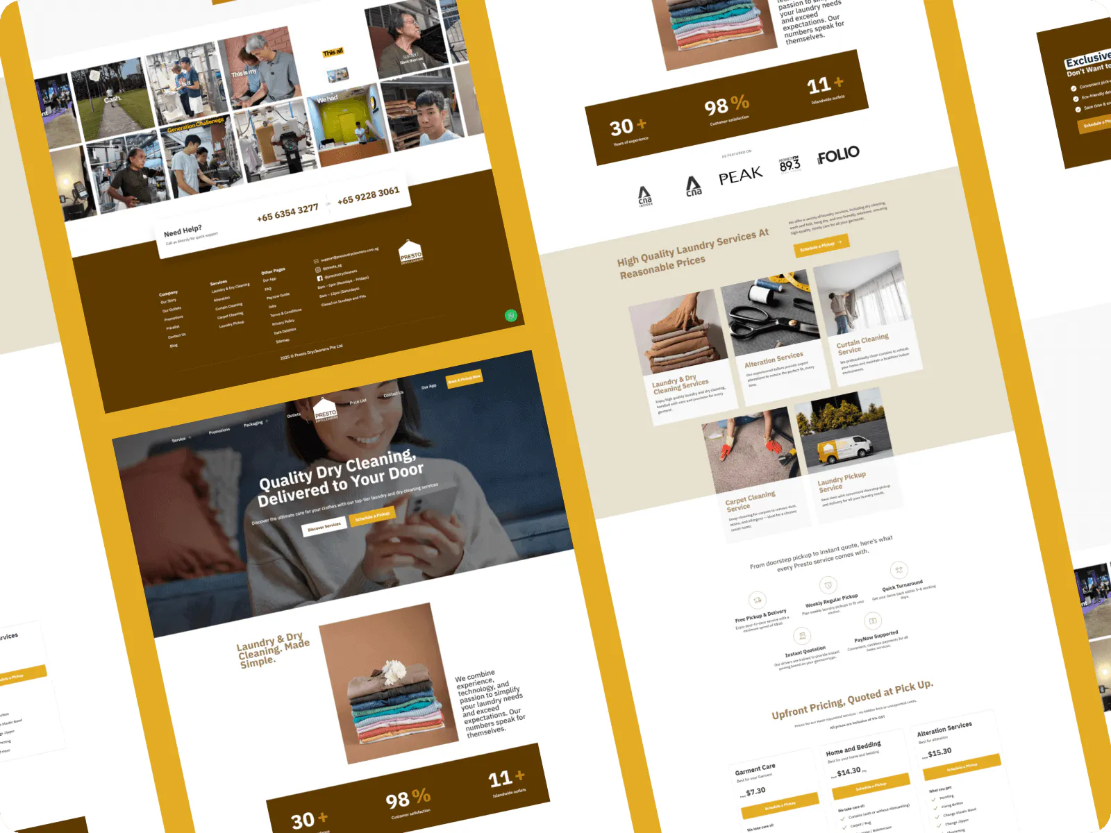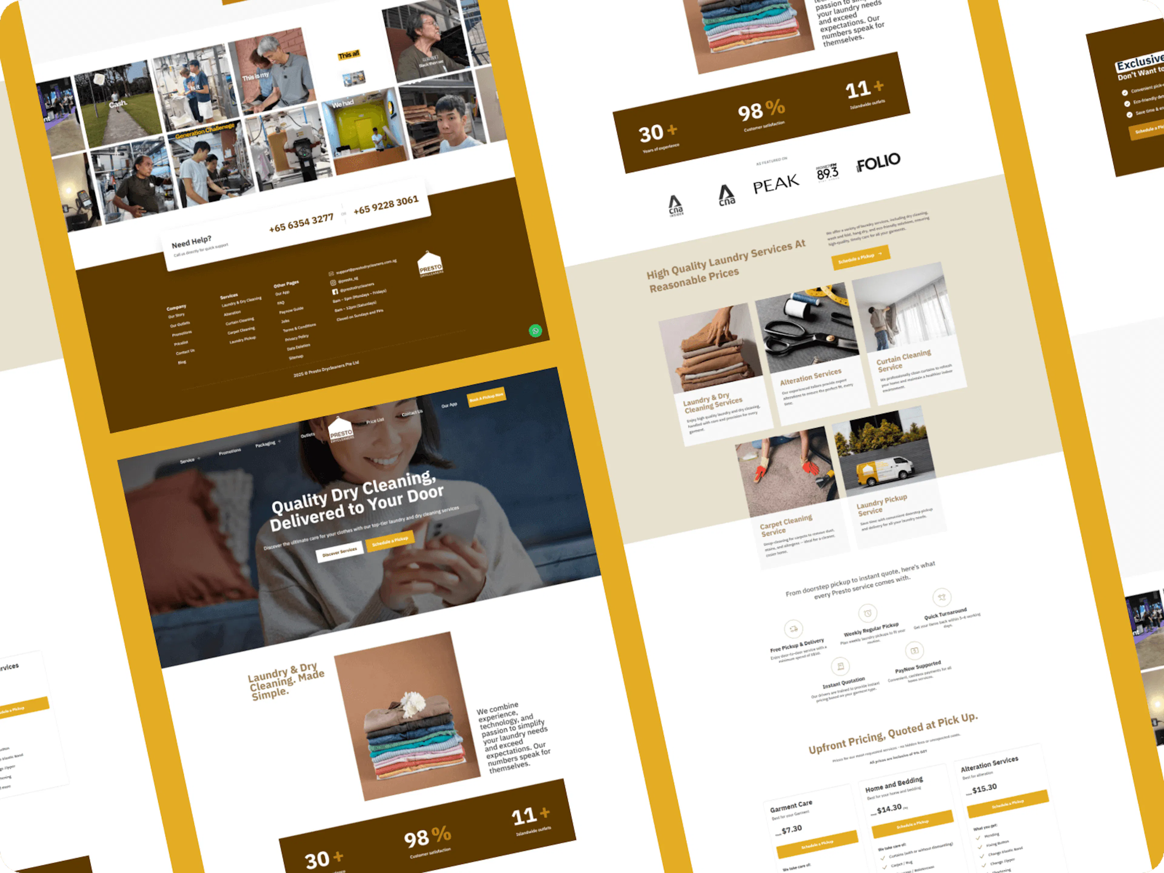prestodrycleaners.com.sgWebsiteA modern website for a Singapore laundry and dry-cleaning SME, enabling customers to explore services, promotions, and outlets while supporting convenient pickup bookings and content updates through a scalable headless CMS architecture.