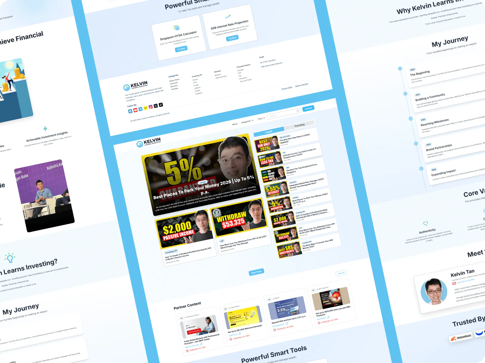 kelvinlearnsinvesting.comWebsitePersonal brand website for a finance YouTuber, designed to showcase educational investing content, courses, and resources while enabling easy content updates through a flexible headless CMS and reusable components.