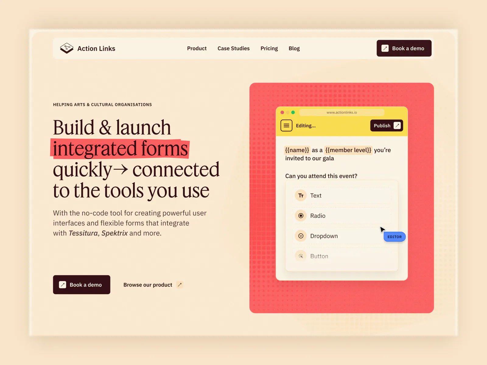www.actionlinks.ioWebsiteRefreshing Action Links visual identity to build trust in the arts & culture sector, whilst better educating customers about their product and driving leads to book a demo.