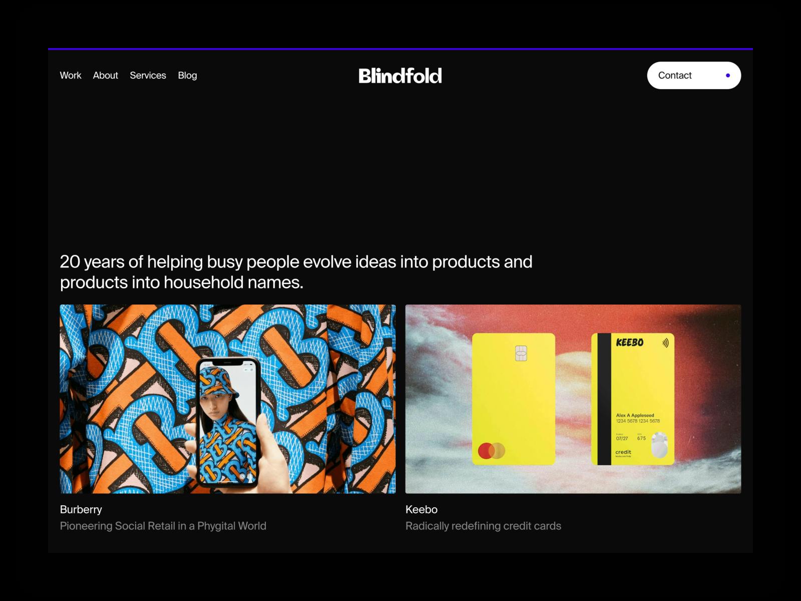 blindfold.pages.devWebsiteBlindfold needed a site that mirrored their creativity and personality – brought to life through storytelling and interactions that reveal content like lifting a blindfold to uncover what’s beneath.