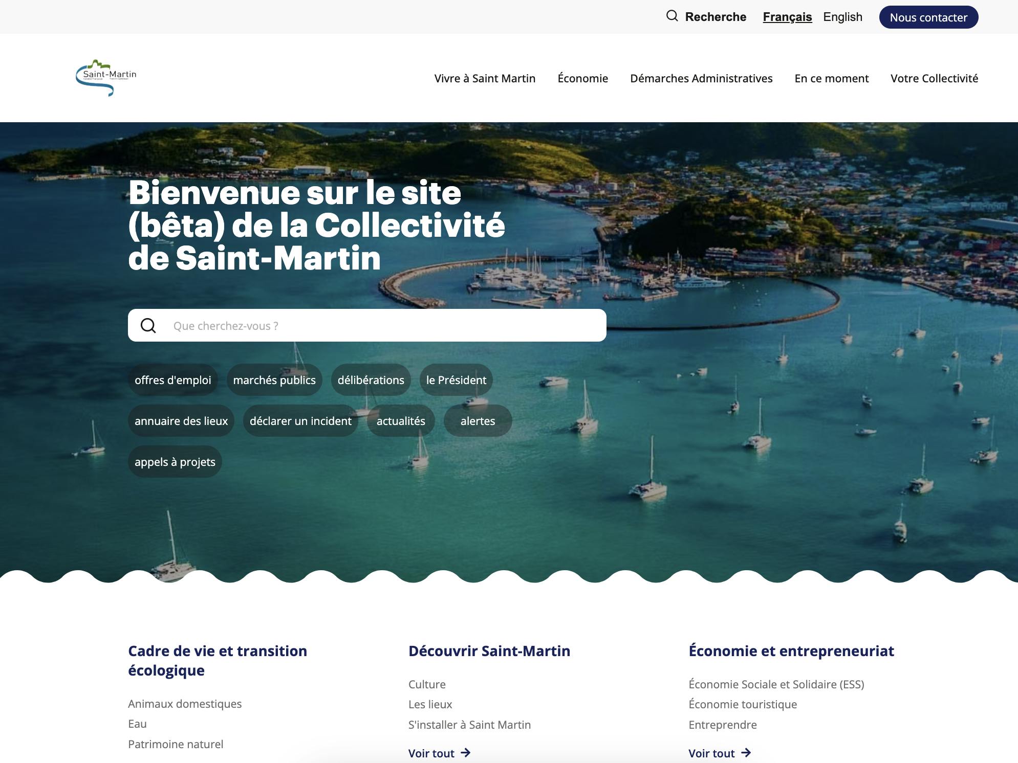 www.comstmartin.frWebsiteFor the Collectivity of Saint-Martin, we designed a structured institutional website and a secure citizen portal, simplifying online procedures, access to key information, and intuitive navigation through territorial co-design collaboration.