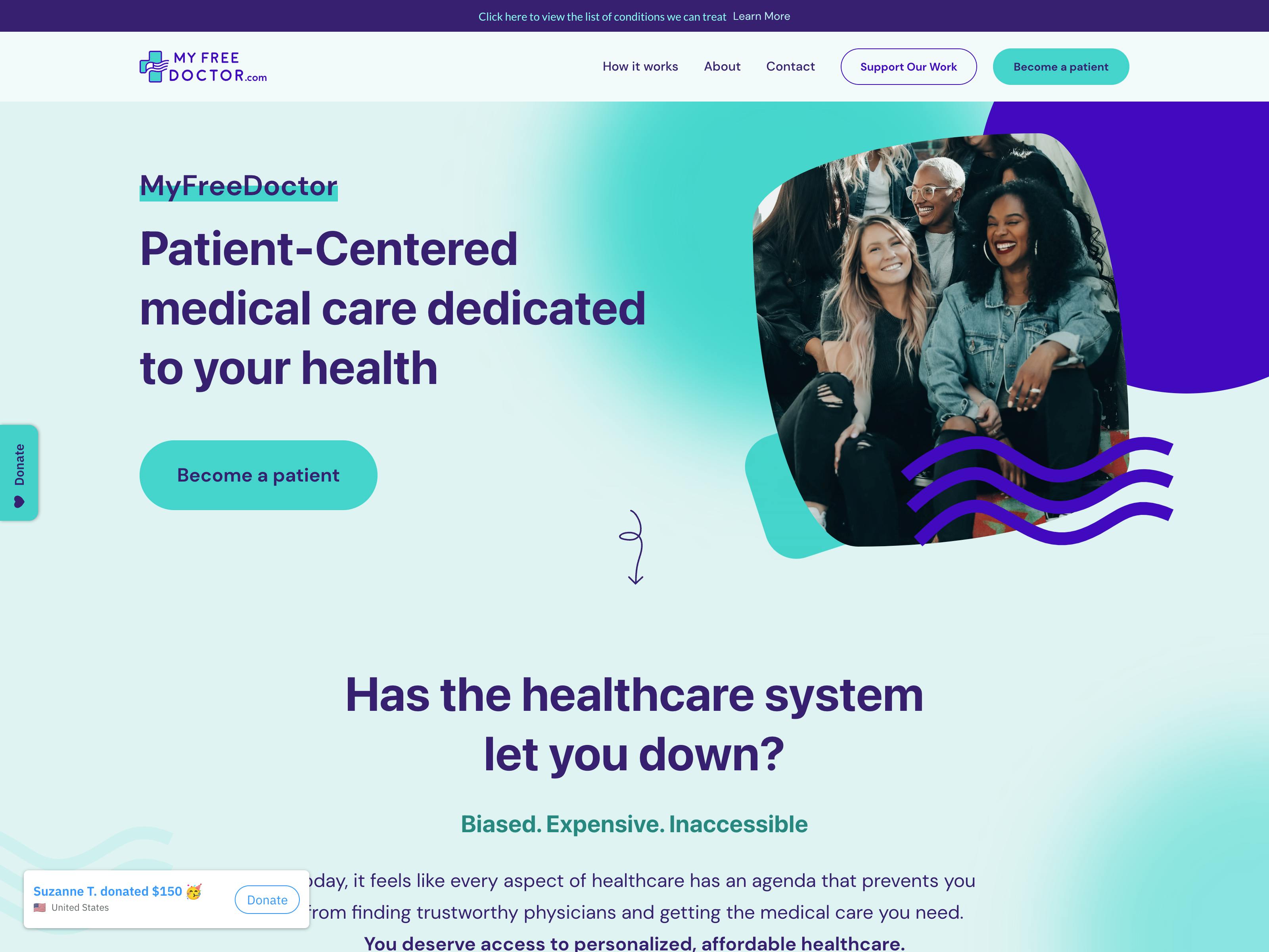 myfreedoctor.vercel.appWebsiteMyFreeDoctor is a free, donation-funded, telehealth service that gives people easy access to doctors that care for them while respecting their medical freedom. MyFreeDoctor's text-based service gives people quick access to doctors when they need it, all from the comfort of their own homes.