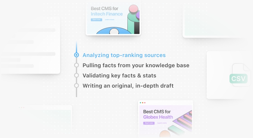 Outrank competitors in AI search by launching hundreds of optimized website pages in hours, not weeks.