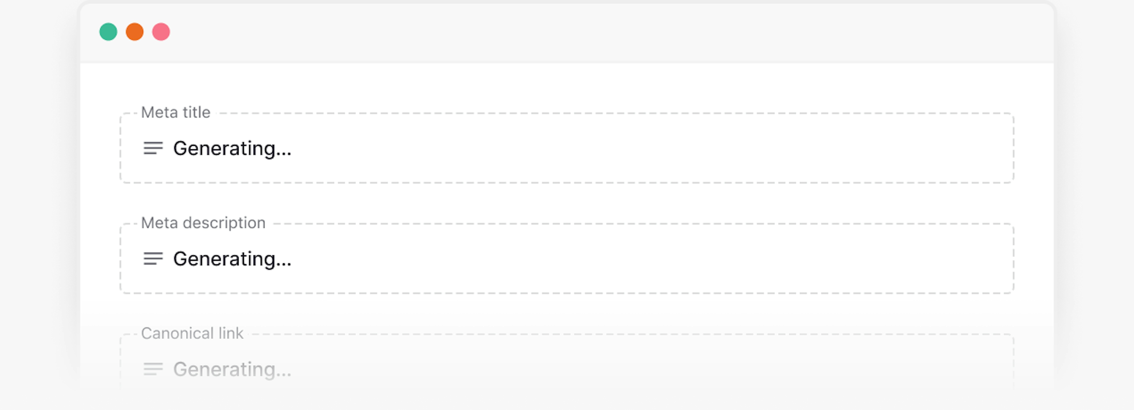 Meta titles, descriptions, internal links, schema, FAQs, and semantic markup are handled automatically - ensuring every page follows SEO and GEO best practices.