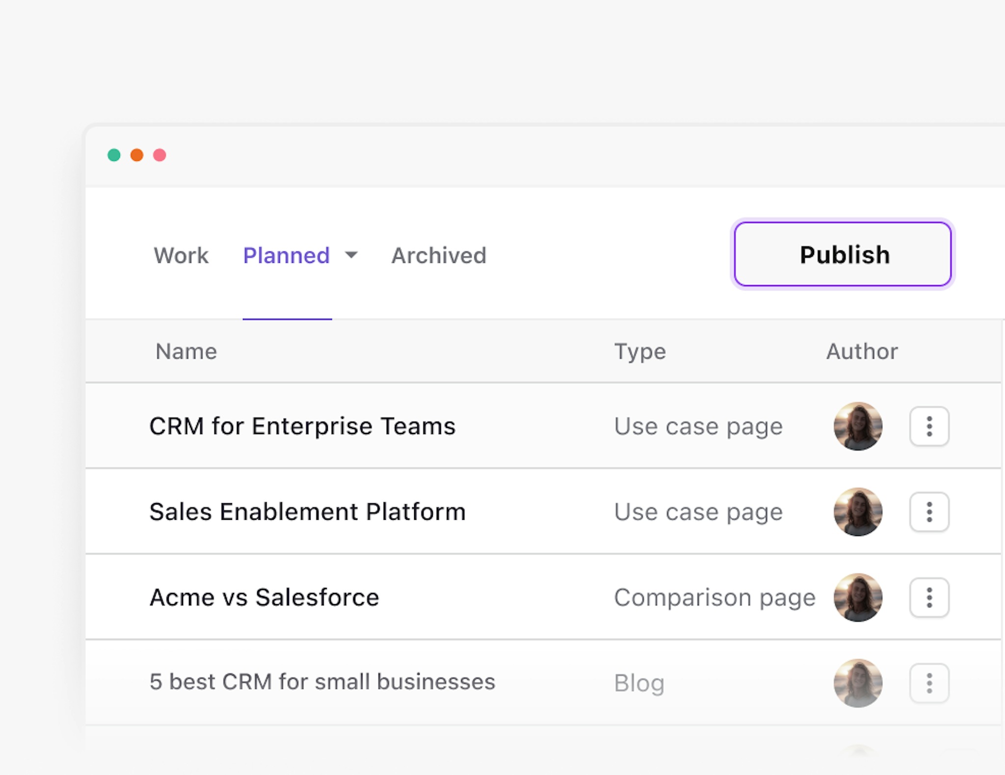 Upload keywords, connect SEO tools, or let Prismic identify content gaps automatically, then create pages as draft.