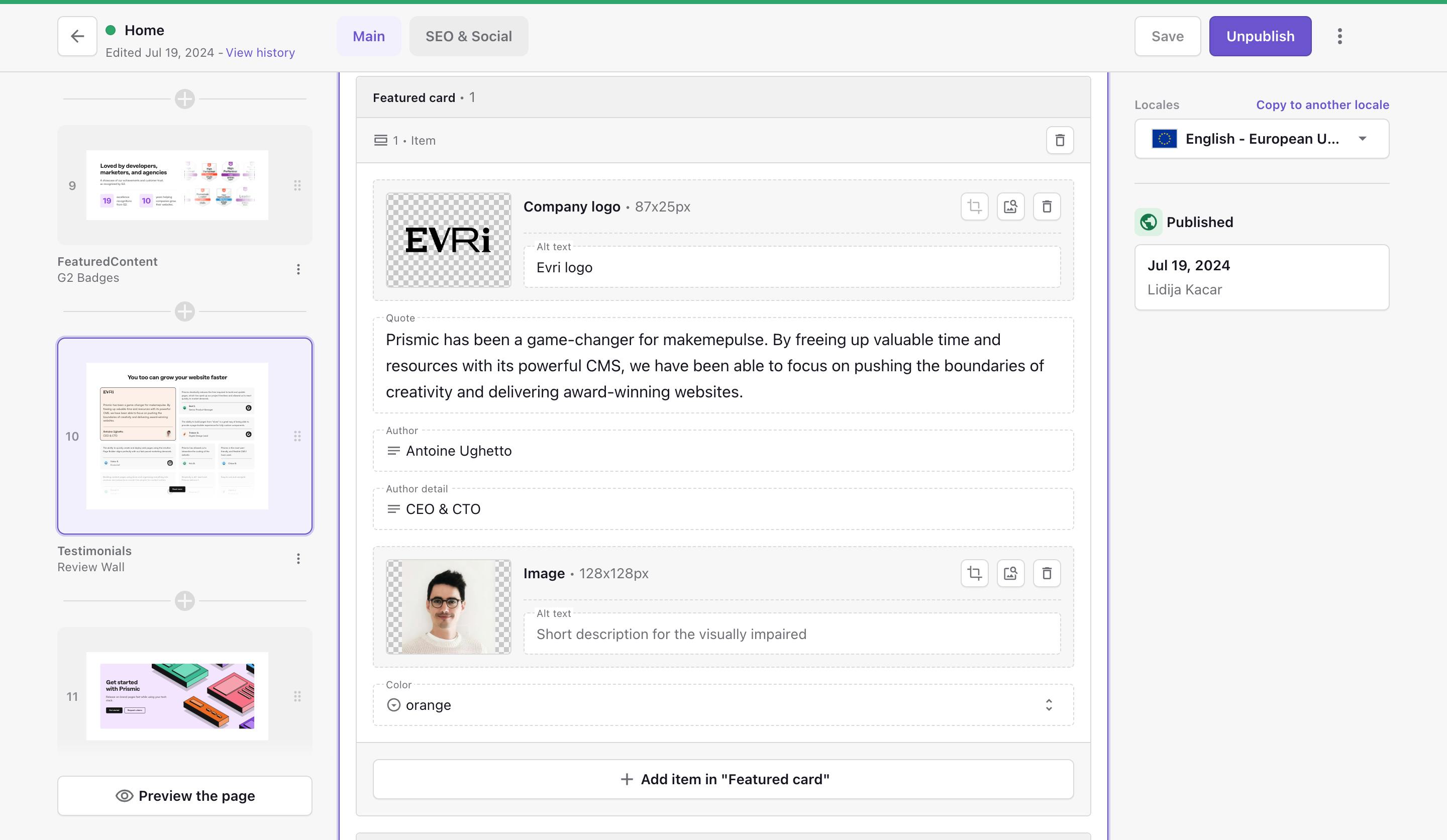 - Integration field: Find the catalogs you’ve connected to Prismic. Create pages from the new Page Builder, visually blending your catalog items in your pages.
