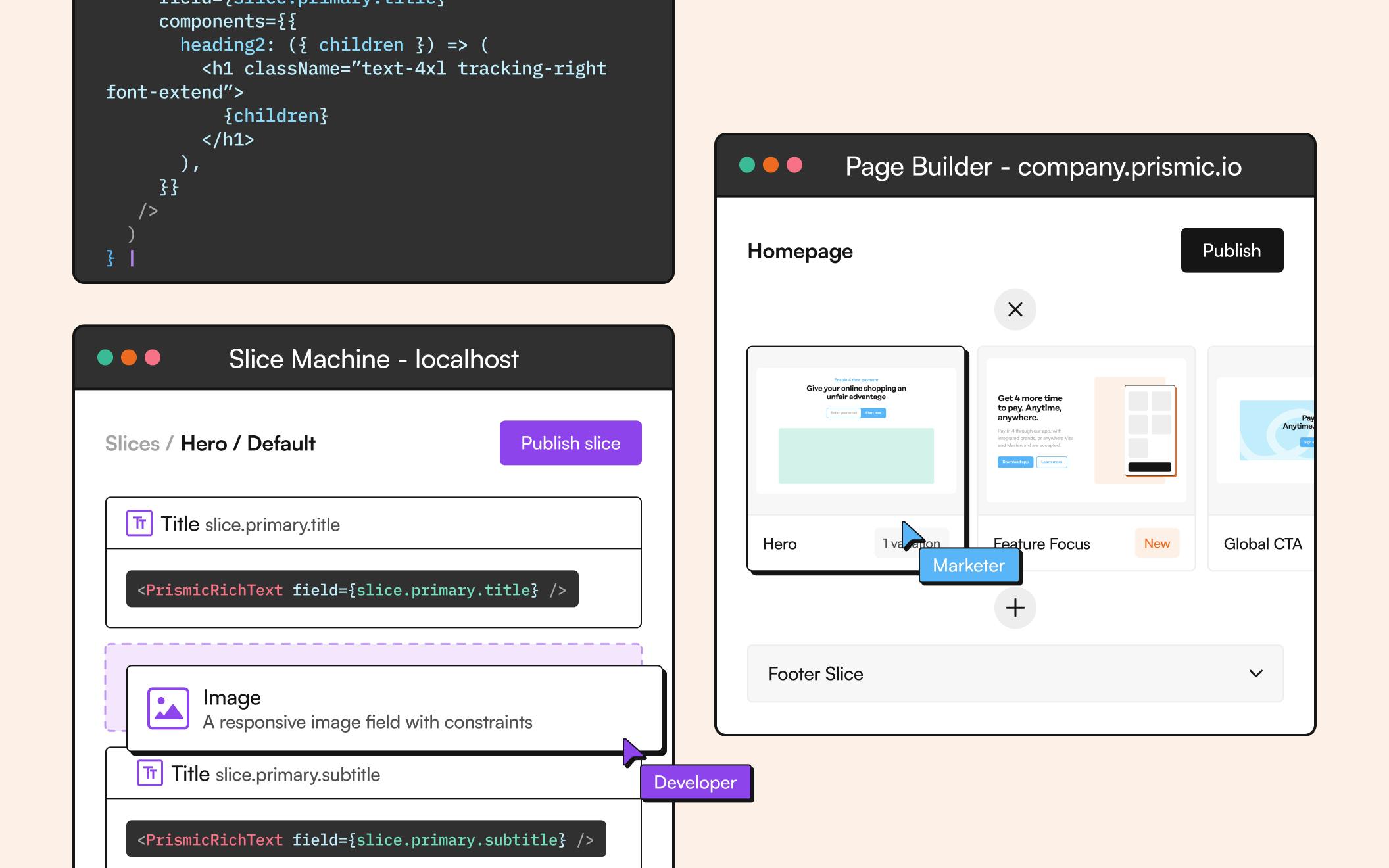 Maintain a unique brand across all pages through fully customizable building blocks called slices.