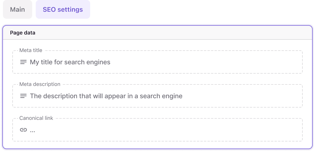With an SEO and metadata tab, you'll have a simple way of adding SEO details to your pages, improving your chances of ranking higher in the SERPs. The best part: it's fully customizable, so you can choose what you want to control.