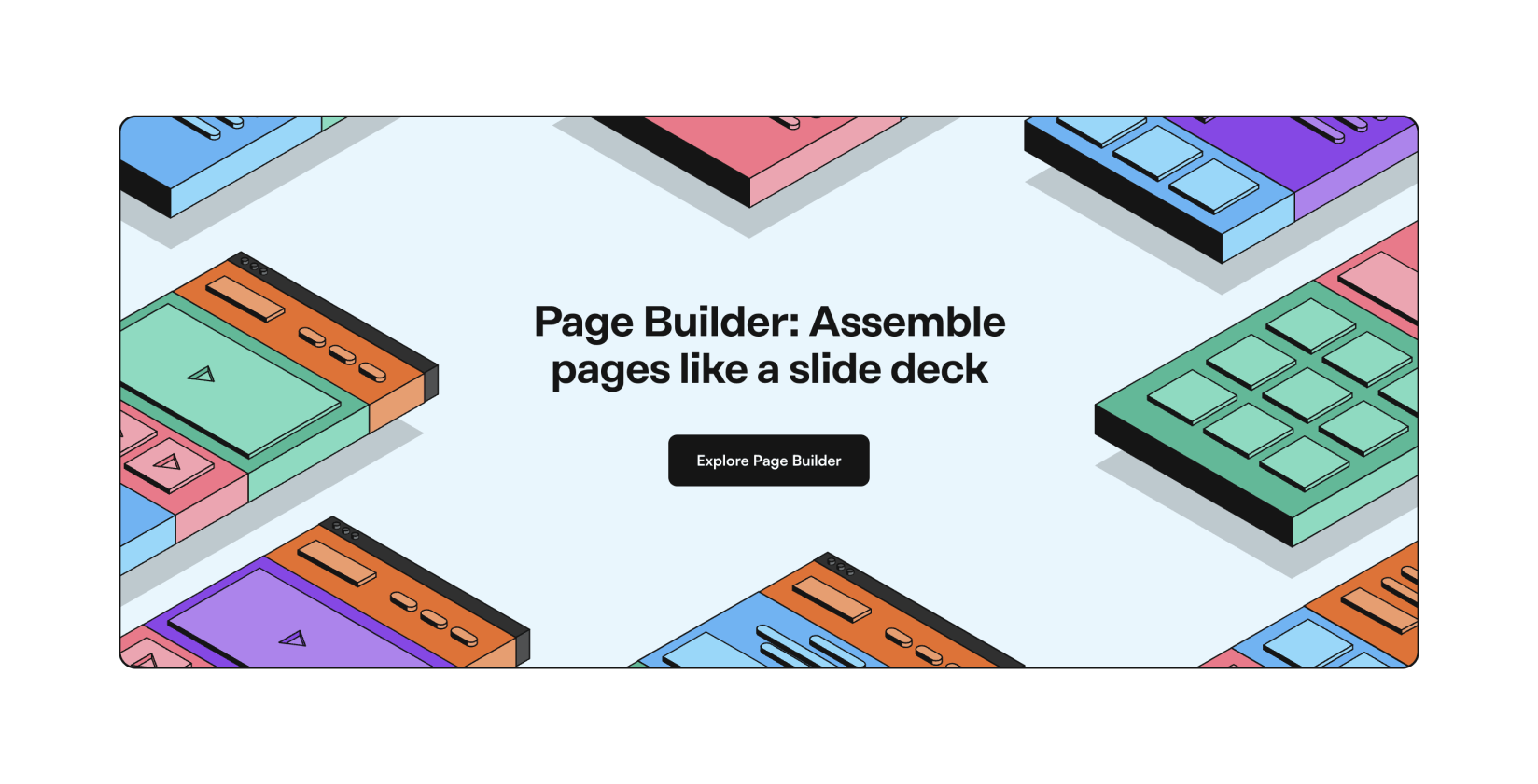 - Assemble pages like a slide deck- Craft on-brand pages by combining slices, similar to how you assemble slides for a presentation. Slices are custom-made, reusable sections that ensure design consistency, while giving you flexibility in how you structure your pages.
