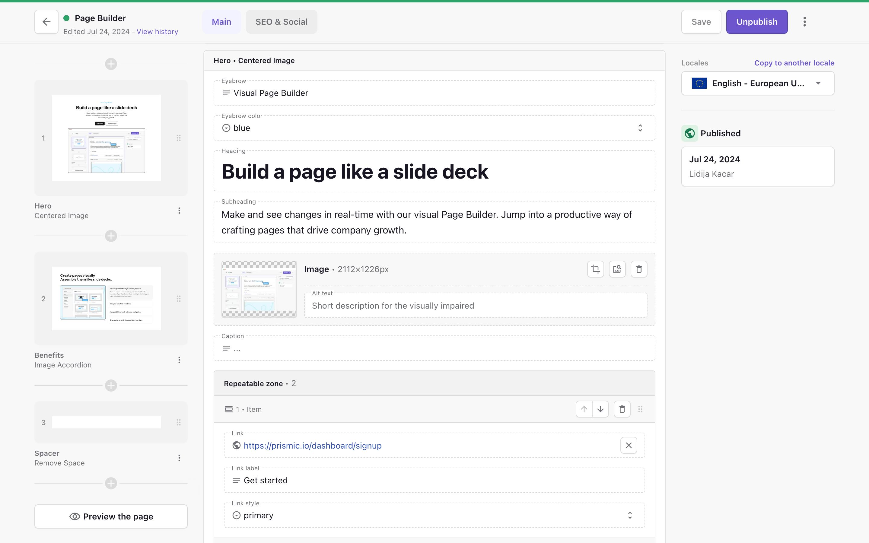- We fixed an issue where actions/changes performed in Prismic were not reflected immediately on another part of the screen. For example, you created a new locale but it is not immediately available in the copy to a locale modal and you need to reload the page to see it.