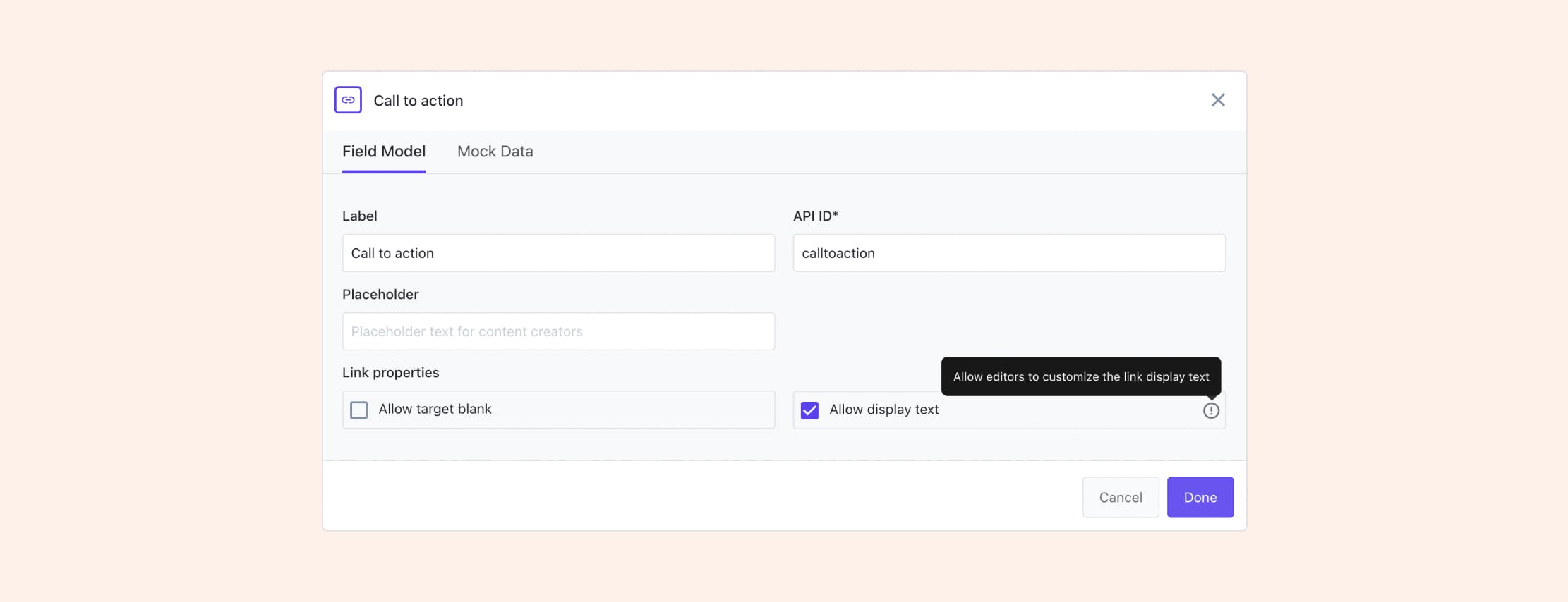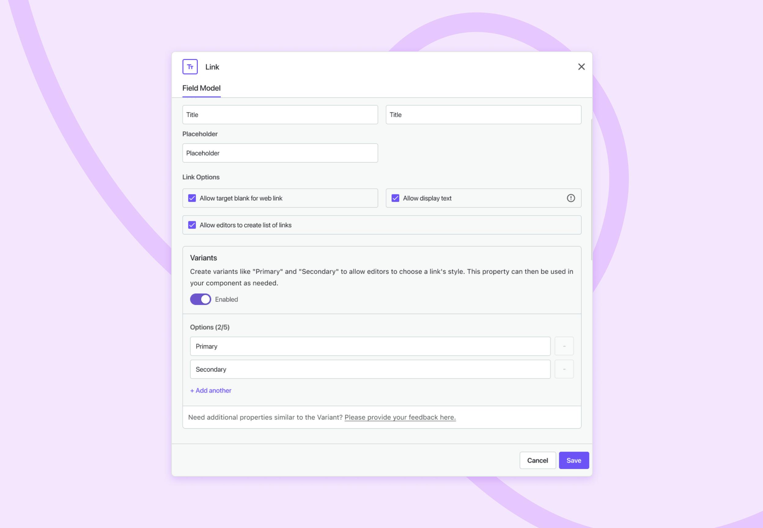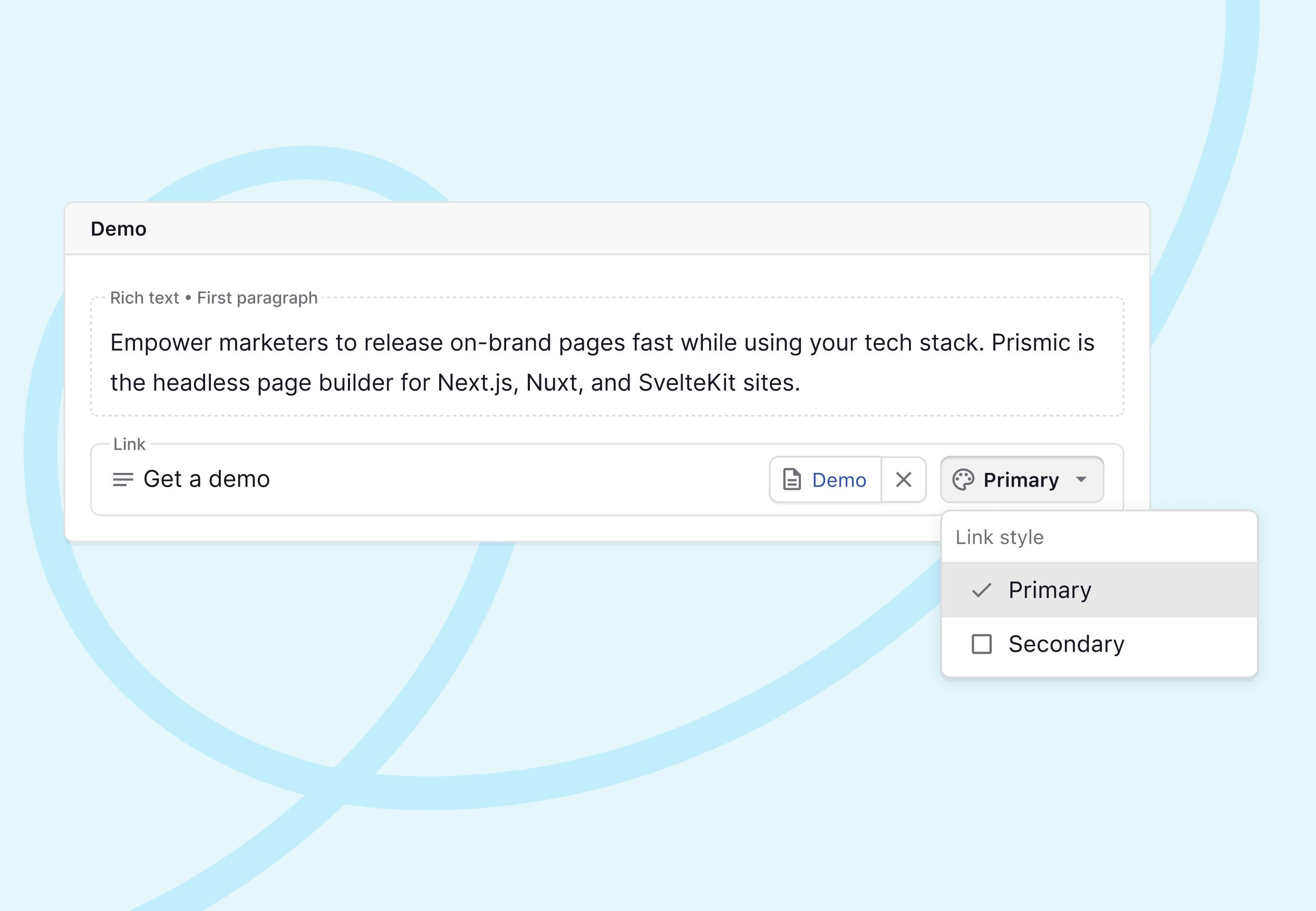 - We're upgrading our link field to make it easier for developers to create links with display text and style in slices while providing a simpler experience for marketers in the Page Builder.