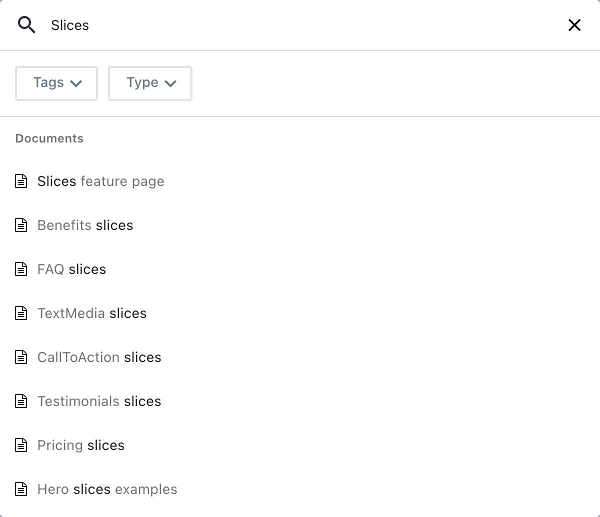 Towards the end of last quarter, we updated Prismic's search functionality to help you locate your content faster and more accurately. And now, we are bringing further enhancements to the search to improve that process even more. So, here's a quick recap of the new features you'll start seeing in the search modal over the next week: