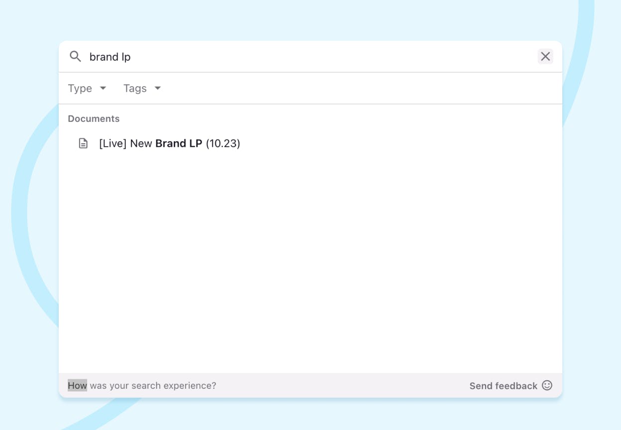 One of the key improvements is boosting page names to the top of search results. After extensive research into how marketers and teams search for content, we found that prioritizing page names aligns with how most people use search, making it more intuitive and relevant.
