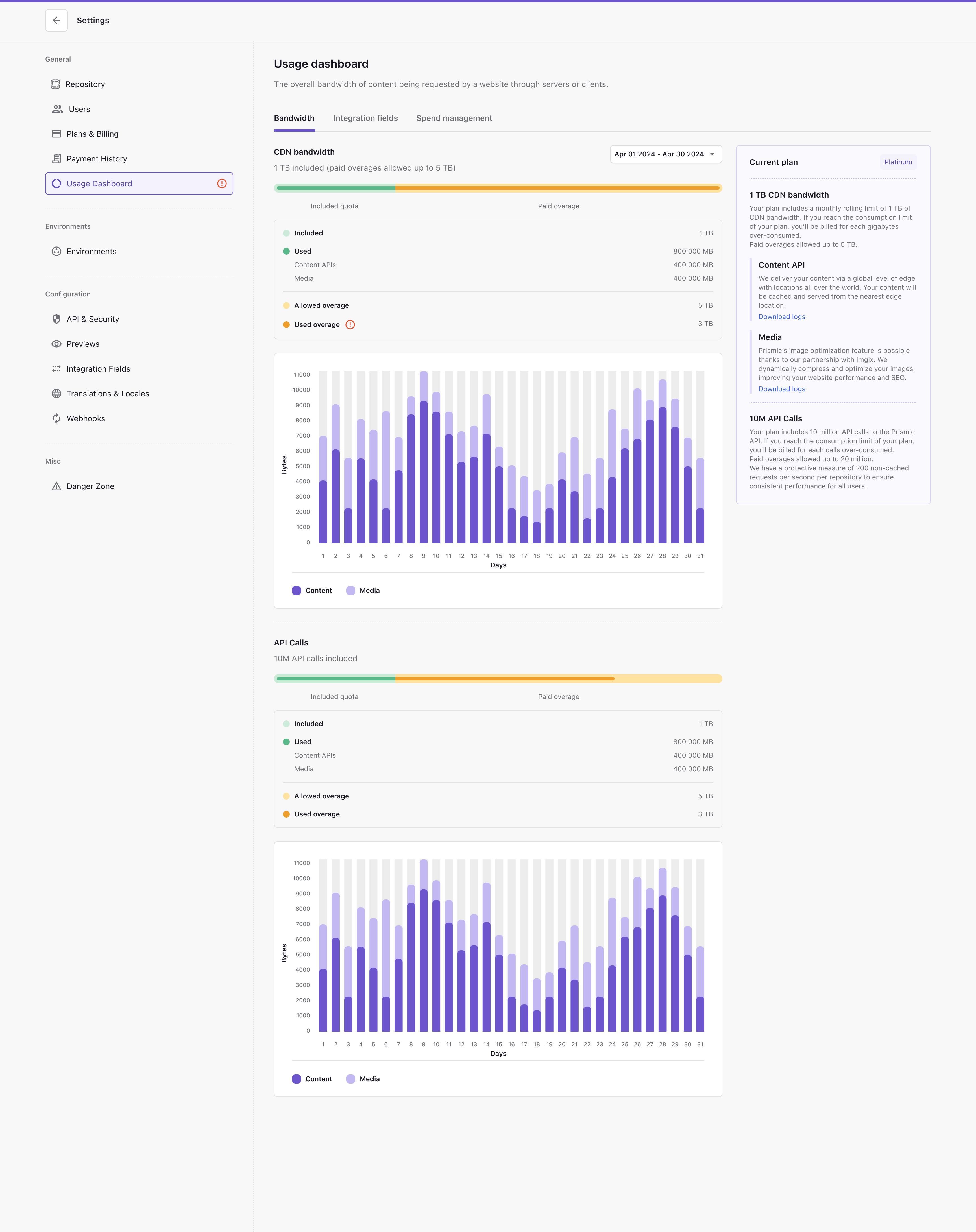 Providing clear, accessible data on your current usage was our first priority, addressing immediate needs for transparency as you use Prismic day-to-day.