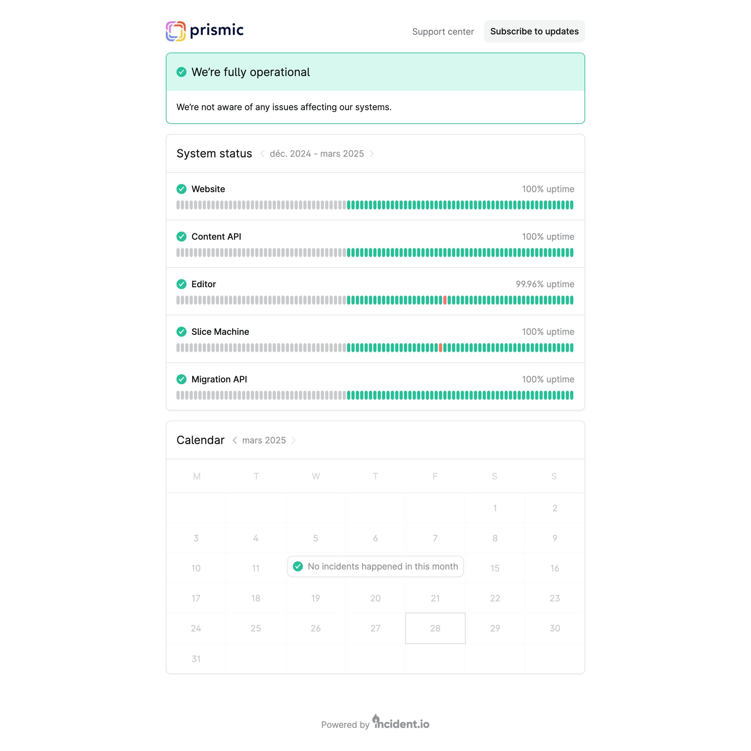 We’ve updated our status page and streamlined our processes for faster, more responsive communication with our clients. Plus, you can now subscribe to receive real-time updates via email or Slack