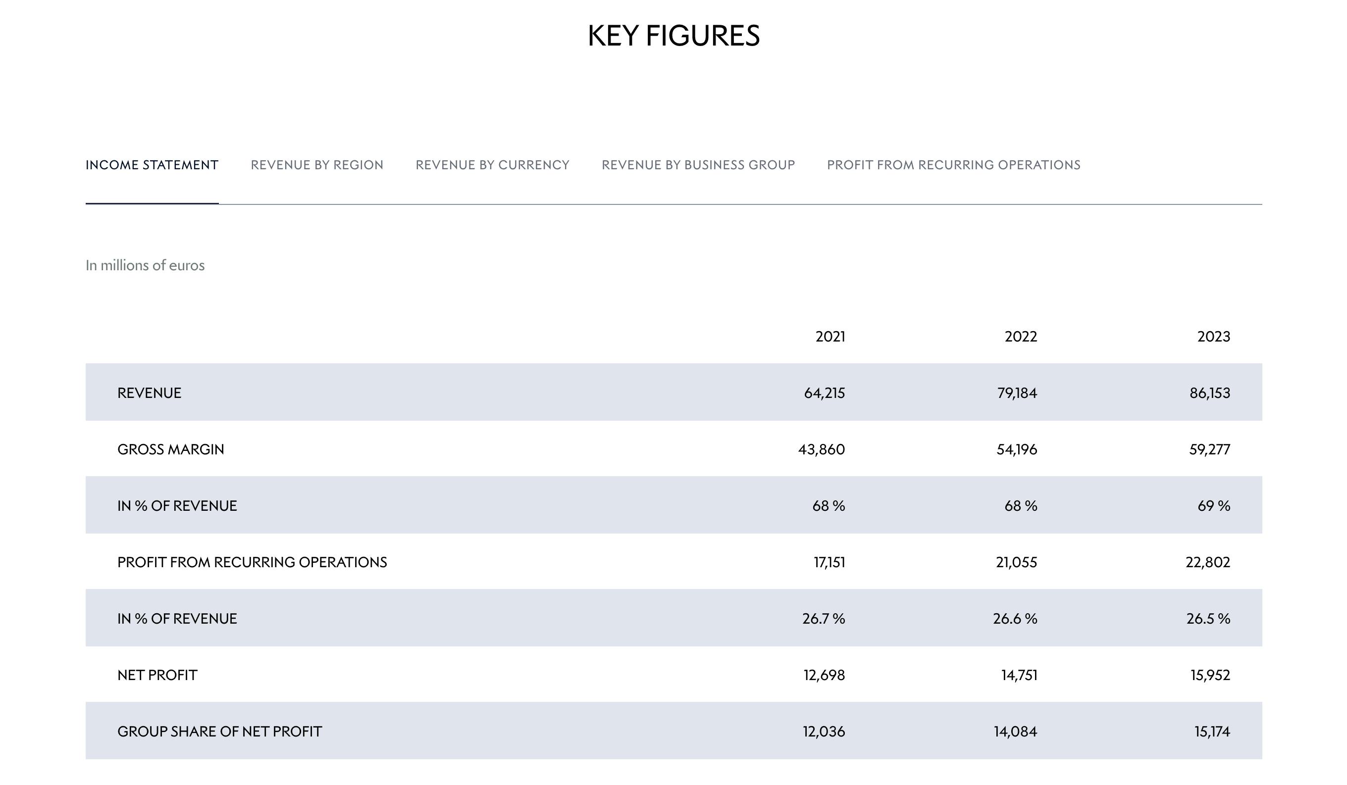 Example from LVMH public investors website