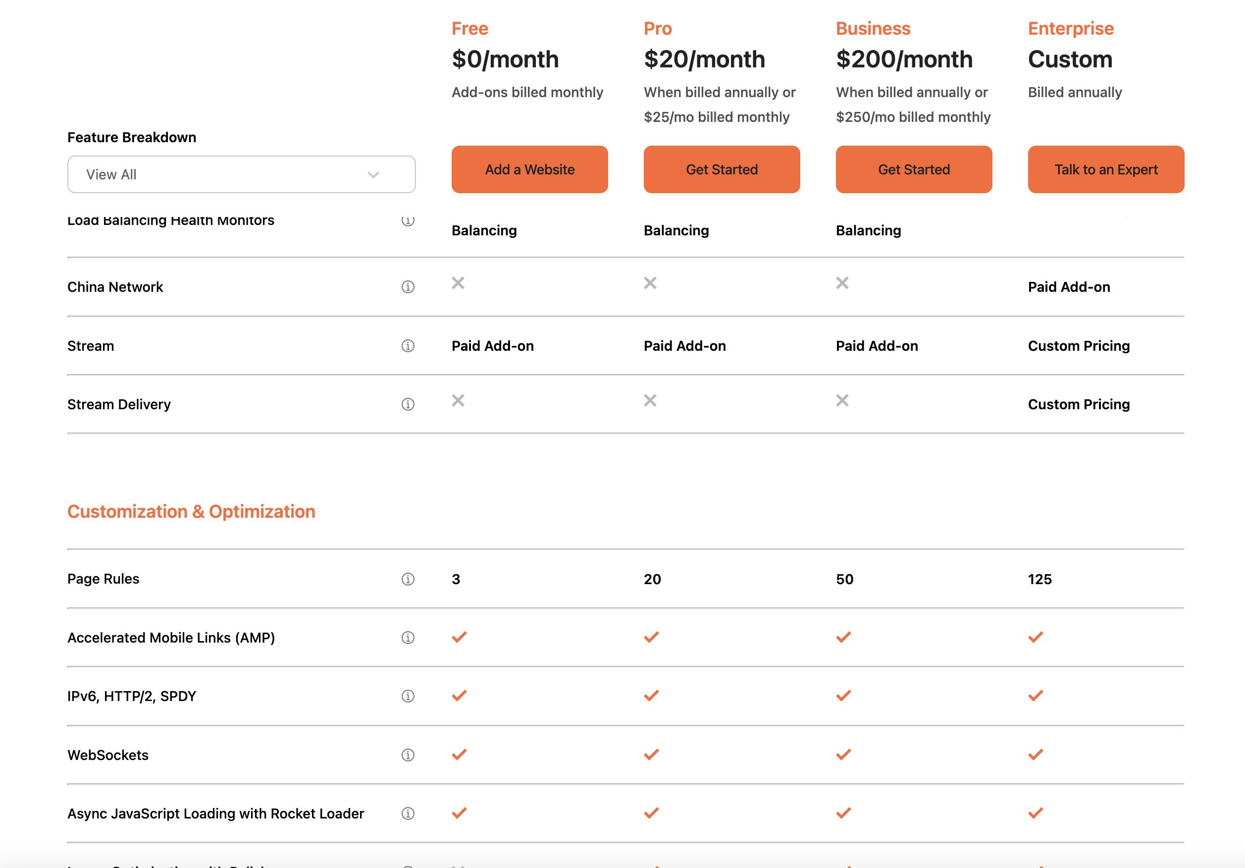 Example from Cloudfare pricing page